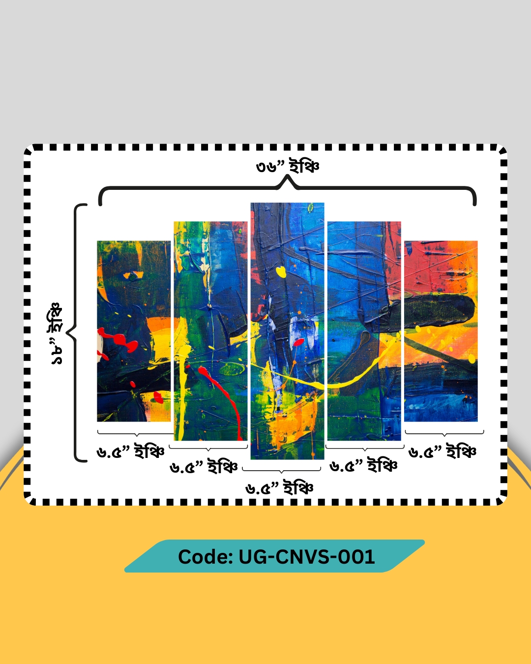 এই Multicolor abstract wall canvas টি আধুনিক ঘরের দেয়াল এর জন্য বিশেষভাবে ডিজাইন করা। ৫টি প্যানেলে বিভক্ত এই ডিজাইনটি living room, bedroom, dining area কিংবা office wall এ এনে দেবে Elegant ও Luxury look।